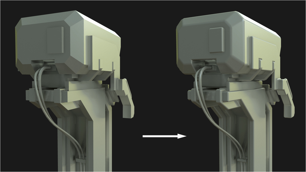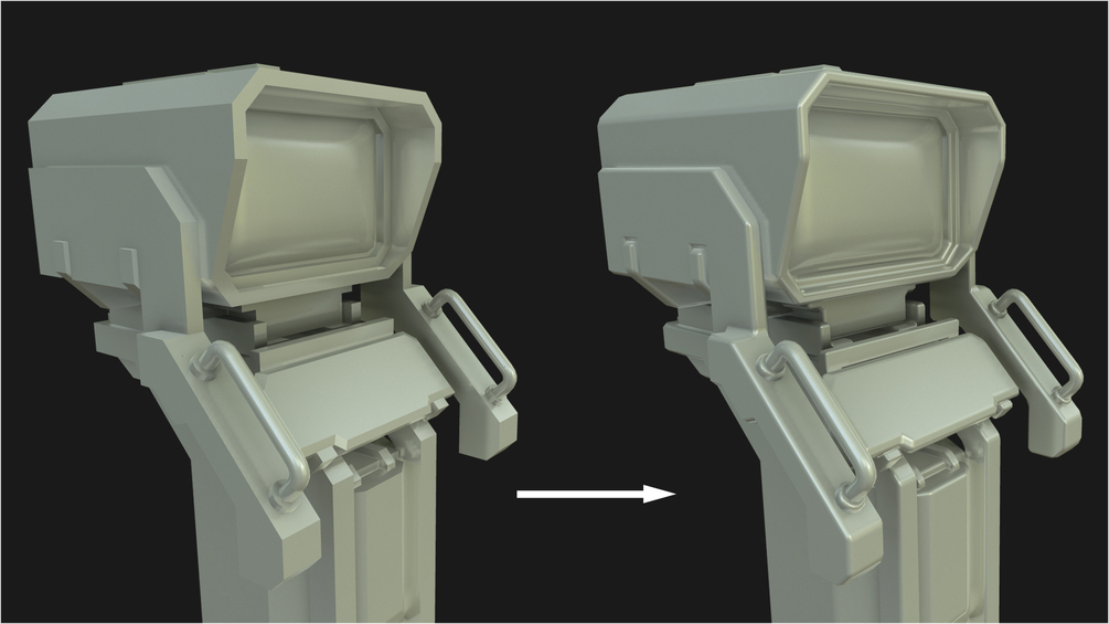 A fast and non-destructive solution for real time hard surface modelling using chamfers and custom vertex normals.